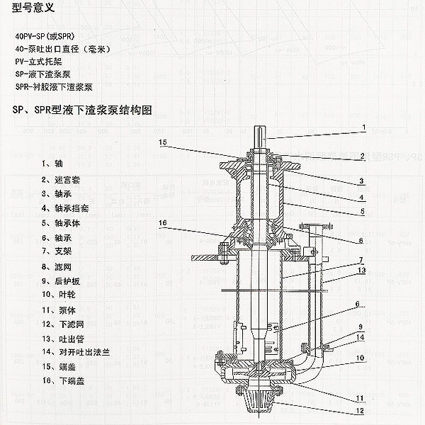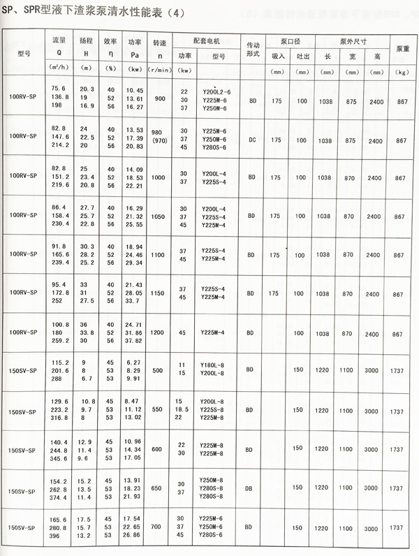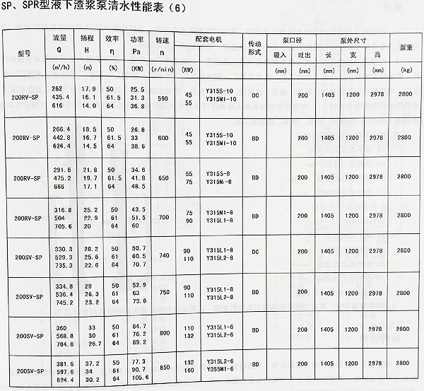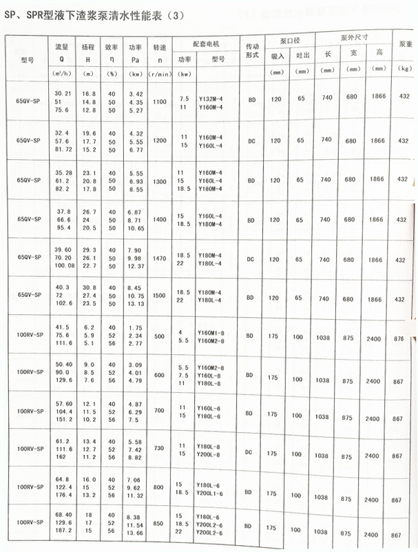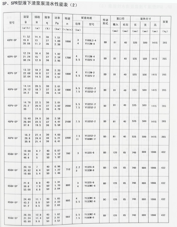 SP(R)型為立式離心渣漿泵,一般浸入池內工作。SP型過流部件為特種高耐磨金屬材質適用輸送磨蝕性渣漿。SPR型過流部件及軸襯有耐腐蝕的橡膠,適于輸送腐蝕性渣漿。SP(R)型泵適用于冶金、礦山、煤炭、電力、建材等行業。用戶可按對水力性能要求選擇相應轉速,達到節能目的。